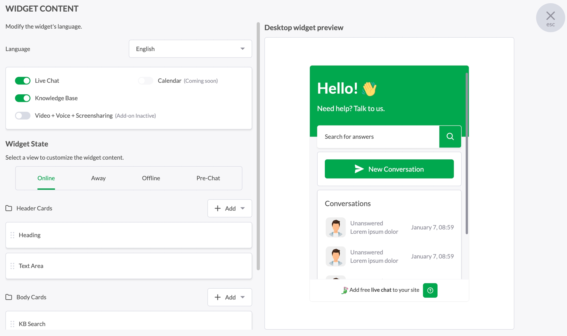 Adding the Pre-Chat form The Pre-Chat form makes it easy to capture important visitor information before starting a chat. To learn more about using the Pre-Chat form, click here. To add the form, select the Pre-Chat tab.